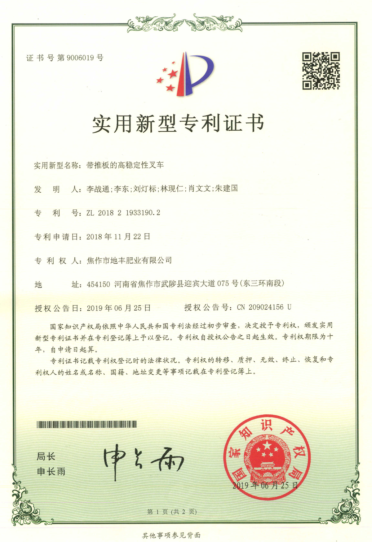 帶推板的高穩(wěn)定性叉車